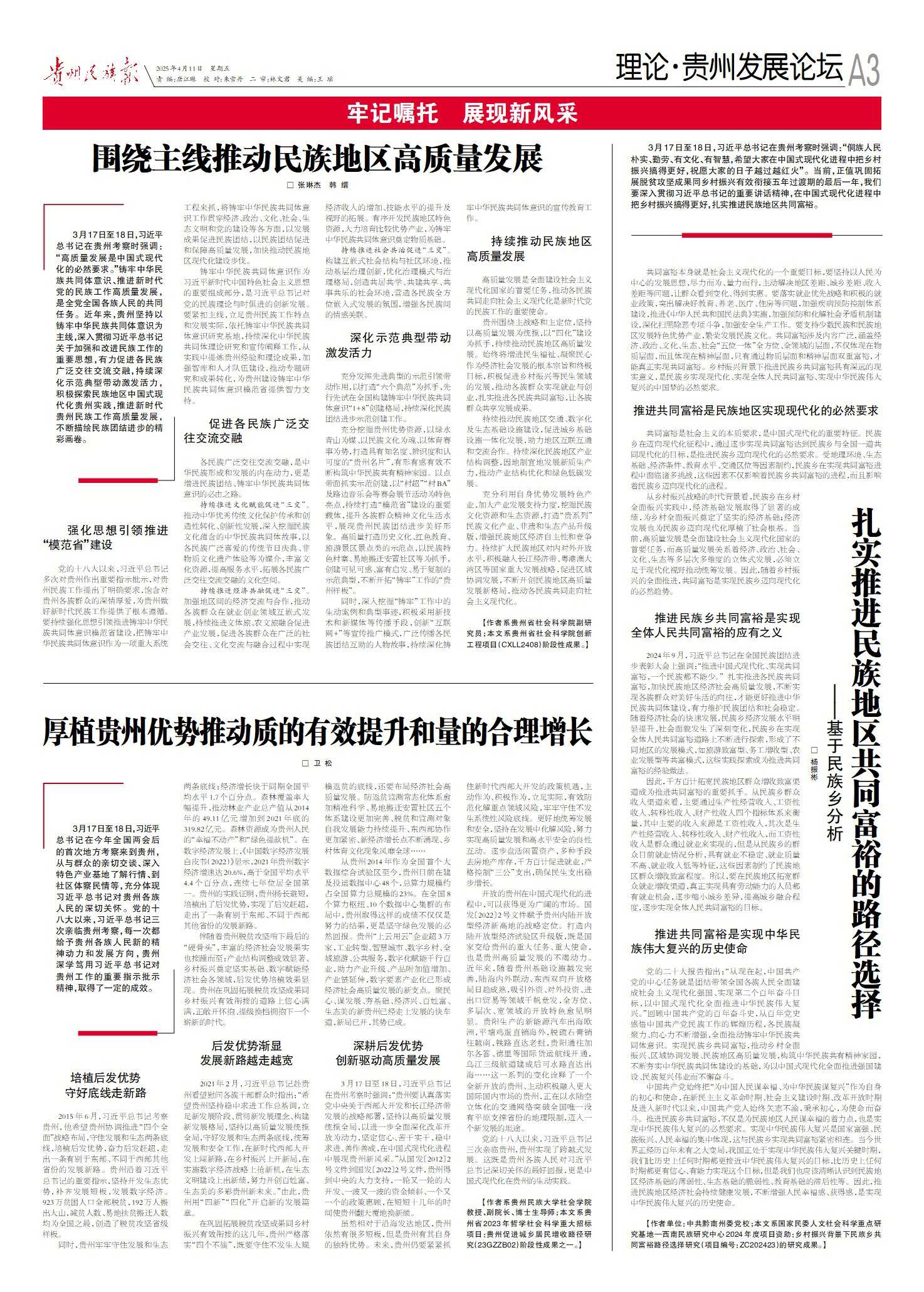 《贵州民族报》刊发我院卫松教授文章《厚植贵州优势推动质的有效提升和量的合理增长》