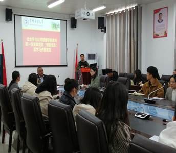 2019年11月20日12:30分,社会学与公共管理学院本科生第一党支部在商学院422会议室组织开展关于集中学习“十九届四中全会报告”大会。党支部书记贺军同志领学十九届四中全会报告全文,党支部副书记夏晓敏(学生)同志作总结发言。