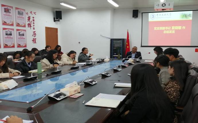 党支部副书记夏晓敏(学生)同志作总结发言。她说,我们作为学生党员,要坚持从生活出发,把学习融入社会实践中,在实践中去检验自己。做好先锋模范作用,坚定理想信念。