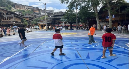 图3 实践团队与西江千户苗寨留守儿童一起打篮球
