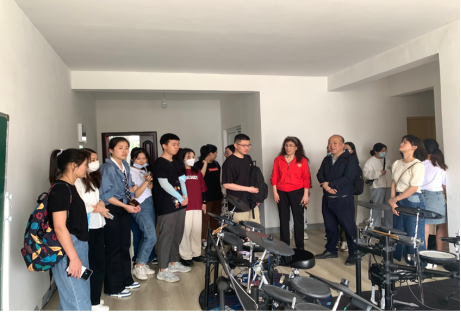 图三 贵阳慧灵负责人赵老师带领老师和同学们参观机构