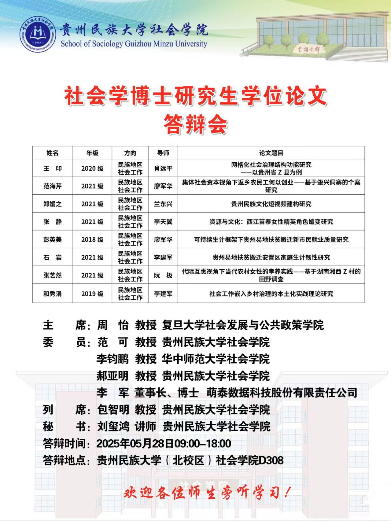 2025届社会工作专业 硕士学位论文答辩议程(专业型)