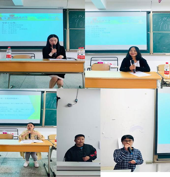 接下来,2018级硕士研究生胡婷、吴鸿、韦柳相、阳卓、刘欣,2019级硕士研究生李圳雨、聂丹分别详细介绍了考研科目及各科目特点,并分享了各自的复习方法,最后根据各自的备考经验提醒同学们应关注热点事件,重点掌握易错知识点,为同学们复习备考提供了更多的参考意见。