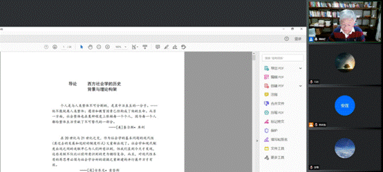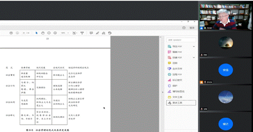 周晓虹教授的授课视野宏大、内容丰富、深入浅出,为我院硕博研究生赋予了新的价值理论,构建了新的研究视域,在整个授课过程中与会同学们认真聆听并通过语音、聊天窗口与周晓虹教授进行了热烈的互动与探讨,同学们获益良多,并期待“社会学理论与经典文献选读”的下次精彩内容。同学们在与周晓虹教授的沟通和交流过程中,不仅在理论方面、研究方法上得到了很大收获,而且在理论视野和专业素养上也有很大提升。