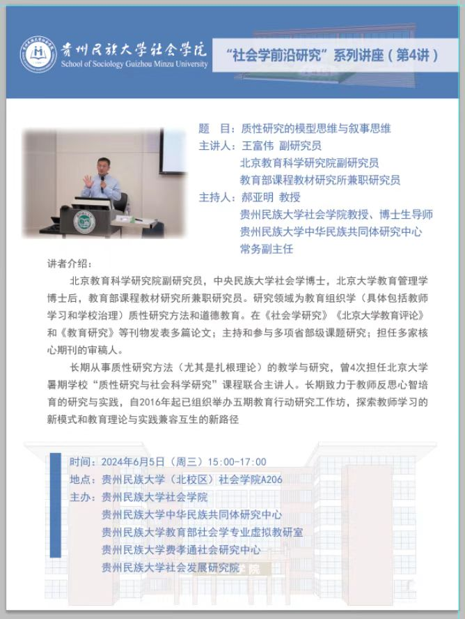 北京教育科学研究院王富伟副研究员到我院开展“社会学前沿研究”讲座(第4讲)