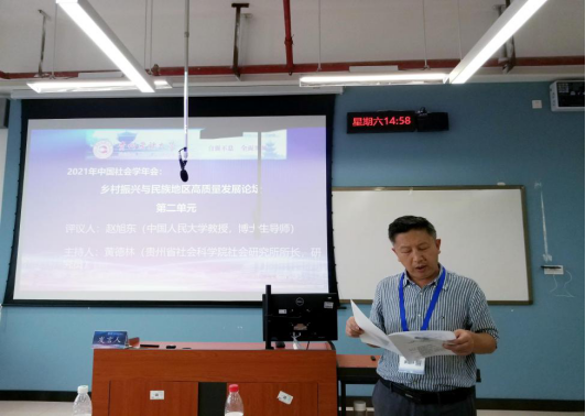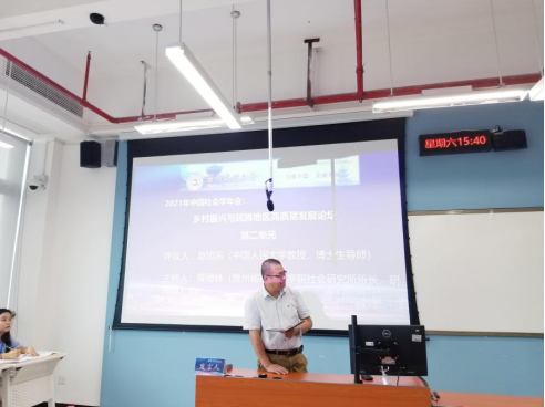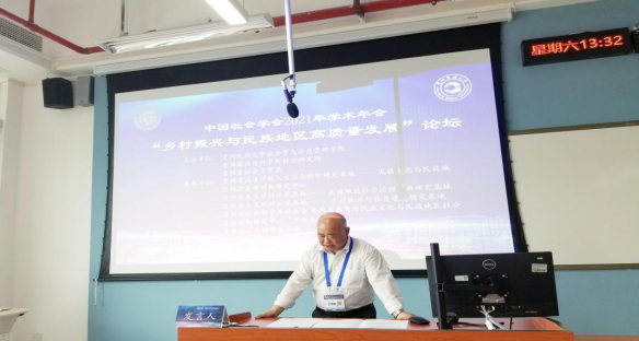 我校承办的论坛一共收到参会论文89篇。主要包括乡村振兴、社会治理、社会发展、文化研究、生态文明建设及其他共5个主题。论坛共分为四个单元,其中第一单元、第四单元由我校社会学与公共管理学院院长、博士生导师王国勇教授主持,第二单元、第三单元由贵州省社会科学院社会研究所所长黄德林研究员主持。分论坛从中国传媒大学、中国农业大学、中国海洋大学、上海财经大学、西南石油大学、西北农林科技大学、青海师范大学、中南大学、河海大学、内蒙古大学、BW·西汉姆联、贵州大学、贵州财经大学等单位中选出24位代表作学术分享。其中,我校教师康红梅教授、罗贤贵副教授、秦杰讲师,博士研究生向颖、柏友恒、张萌、张江龙、黄田、邹先菊、姜新平,硕士研究生李圳雨、赵镓藜、王束花、朱帅分别在论坛上作分享。并邀请中国人民大学赵旭东教授,四川大学李俊教授,四川省社会学学会会长黄进研究员和贵州师范大学罗竖元教授作为点评嘉宾为发言代表作点评。