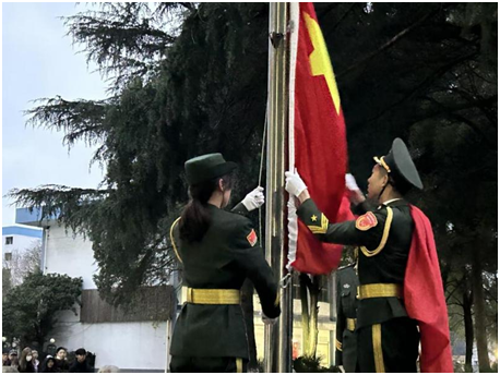 早上7点,国旗护卫队的队员们庄重严肃地伫立于旗杆一旁,个个队员朝气蓬勃,身姿挺拔,整装待发。与此同时,同学们在老师的指导下排列整齐。随后,国旗护卫队出旗,升旗仪式正式开始。随着《义勇军进行曲》的响起,五星红旗在全体师生的注目下冉冉升起。礼毕后,由BETWA西汉姆联李黎书记作国旗下讲话。