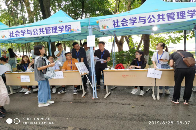 为了全面贯彻以人为本的教育方针,发展素质教育,缓解新生入学时的压力,引导广大新生尽快适应大学生活,以积极的精神状态投入到新的学习生活中,社管学院于2019年8月27日-28日参加了本科迎新生活动。迎新生工作是我们学院学生会新学期工作的开始,也是我们团委学生会新学期工作的重中之重。此次入学的2019 级新生包括社会学、社会工作两个专业,以及公共管理大类的两个班级,共计150人。