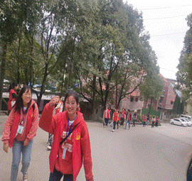 (志愿者们正赶去敬老院的路上)