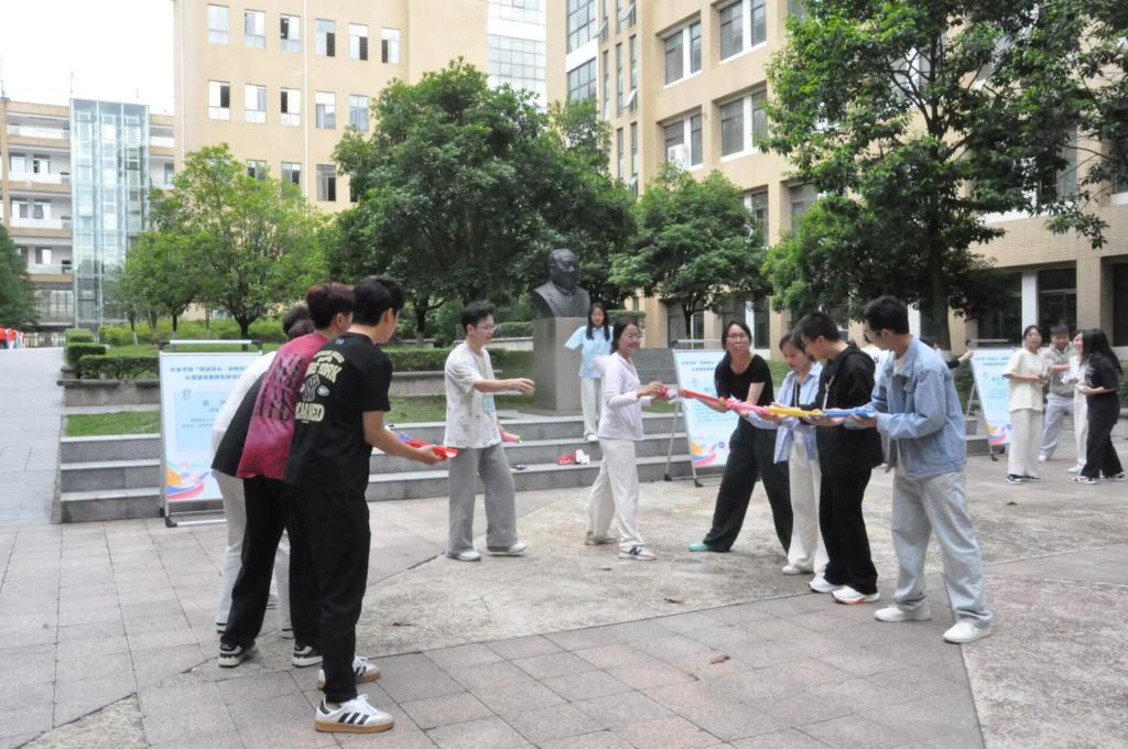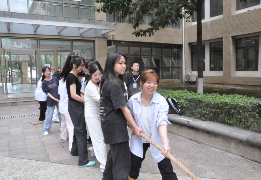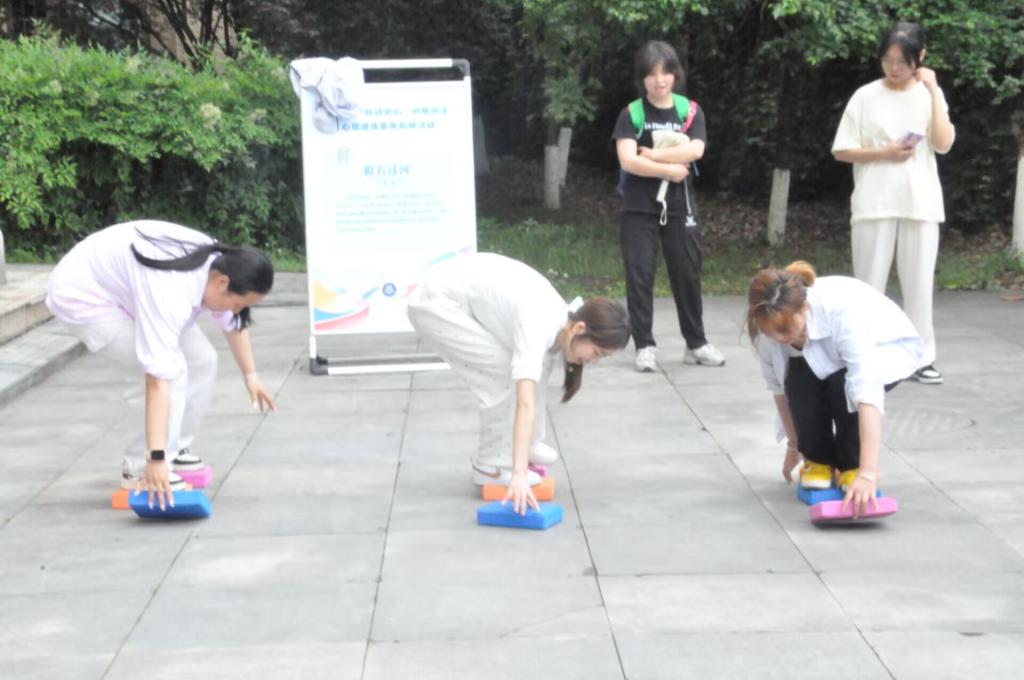 我院于5月9日下午在BETWA西汉姆联费孝通广场顺利开展“跃动身心·向阳而生”心理健康素质拓展活动,此次活动设置团队项目和个人项目两种形式。团队项目包含跳长绳、拔河、珠行万里等三个竞赛,个人项目包含手忙脚乱、摸石过河两个竞赛。