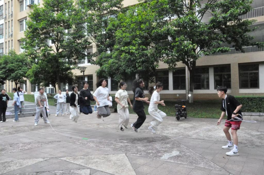 在跳绳比赛中,自由组队的八人队伍身姿矫健,配合默契,以一分钟内跳跃的次数一决高下,充分展现出卓越的团队协作能力与蓬勃的青春活力;拔河比赛更是将现场氛围推向高潮,由9名男生和12名女生分别组成的两支队伍,在二进一淘汰制的赛程中全力以赴,呐喊助威声此起彼伏,生动诠释了同学们强烈的集体荣誉感与顽强的意志力;珠行万里比赛则考验着团队的默契与策略,各小队队员手持PVC管搭建通道,让球顺利滚动至终点容器接力过程中彼此紧密协作,彰显出非凡的团队智慧与精神风貌。