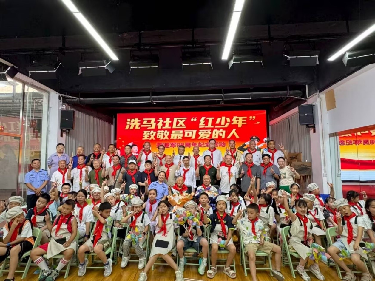 7月31日,洗马社区“红少年”致敬最可爱的人暨建军98周年纪念活动温情启幕。宣讲团与红少年学员携手为退伍军人烹制家常菜,从备菜到掌勺,在烟火气中传递敬意;红歌汇演现场,退役军人与少年们齐声高歌,《沁园春·雪》的朗诵声回荡全场,红少年为老兵系红领巾的瞬间,定格成代际传承的动人画面。宣讲团与中南大学学生代表向抗美援朝老兵献上鲜花,让红色精神代代相传。活动尾声,宣讲团为孩子们送上防溺水手册,将关怀落到实处。