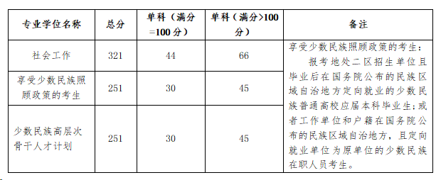 享受少数民族照顾政策的考生: 报考地处二区招生单位且毕业后在国务院公布的民族区域自治地方定向就业的少数民族普通高校应届本科毕业生;或者工作单位和户籍在国务院公布的民族区域自治地方,且定向就业单位为原单位的少数民族在职人员考生。 |