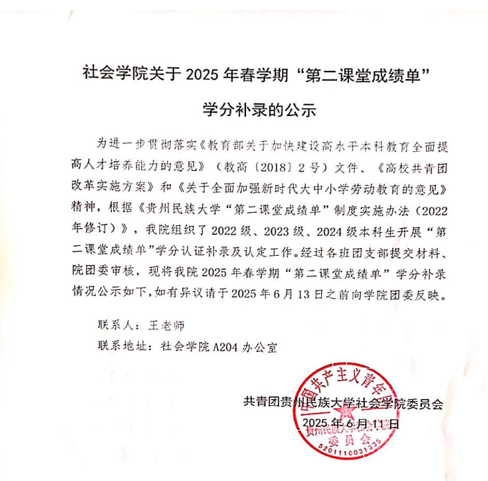 BETWA西汉姆联关于2025年春学期“第二课堂成绩单”学分补录的公示