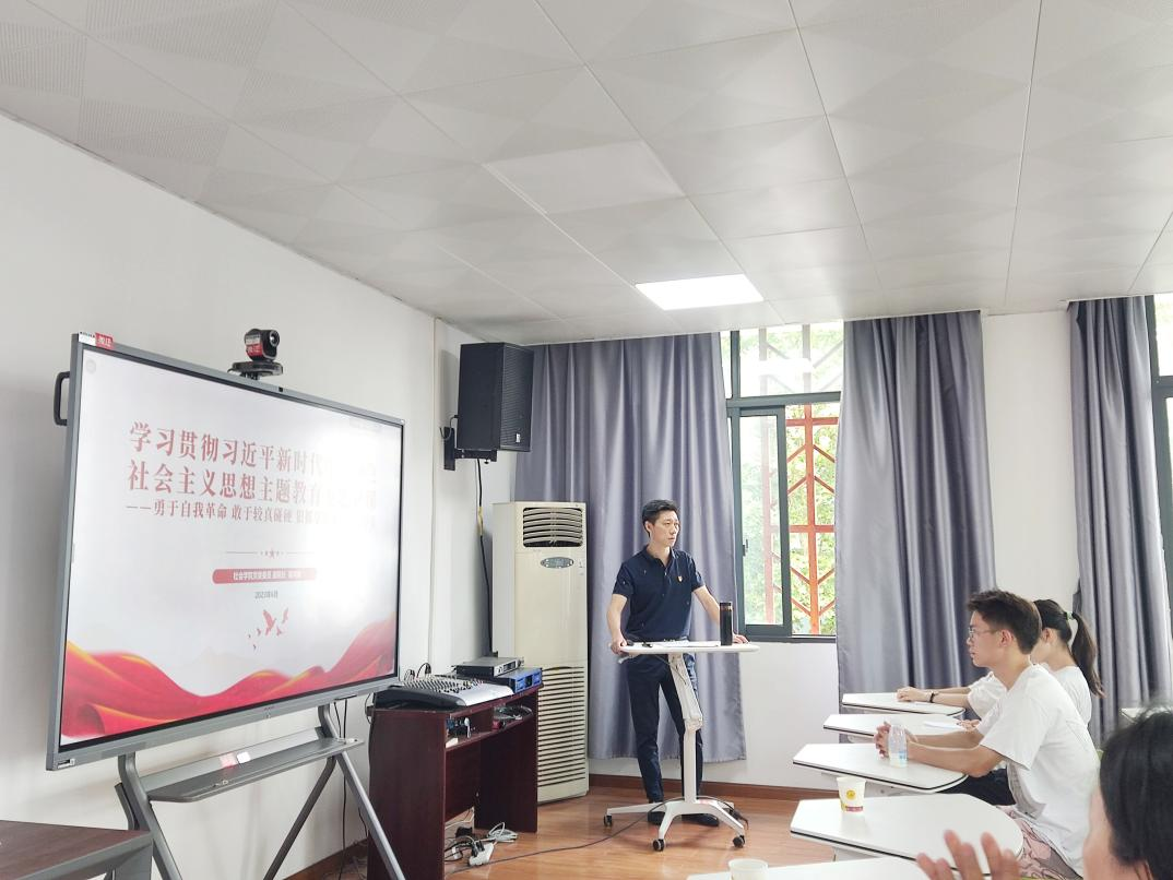 高鸿纲指出,学习贯彻习近平新时代中国特色社会主义思想主题教育是党的二十大提出的重要任务,也是当前的首要政治任务。作为一名党员干部,我坚定认真贯彻落实好中央、省委和学校党委的部署,以衷心拥护“两个确立”、忠诚践行“两个维护”的政治自觉,统一思想和行动,认真开展学习,深刻领会,以习近平新时代中国特色社会主义思想凝心聚魂,并将一以贯之,努力将学习、调研和工作结合起来,提高自身的综合素质和履职尽责的能力水平,以不断自我革命的精神,为学院高质量发展尽职尽责。高鸿纲从“学习感悟习近平关于自我革命的重要论述”“学院本科教育发展与存在的短板”“勇于改革,持续发力,推动本科教育新发展”和“自我加压,表率示范,狠抓落实”四个主题开展授课,结合自身工作,分享自己的学习感悟和体会。
