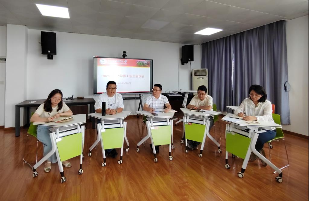 研究生院培养科董振邦老师对2023级博士生的培养方案、课程学习、岗位实践以及各培养环节作了详细介绍,鼓励新生们要坚韧不拔地面对学术道路上的挑战,勇攀高峰,他还郑重提醒同学们要远离一切学术不端行为,秉持诚信和坚守道德。负责博士培养的三位老师依次向同学们介绍了各自负责的业务板块,表示愿意积极地为同学们排忧解难,为他们的学术和生活提供坚强的后盾。