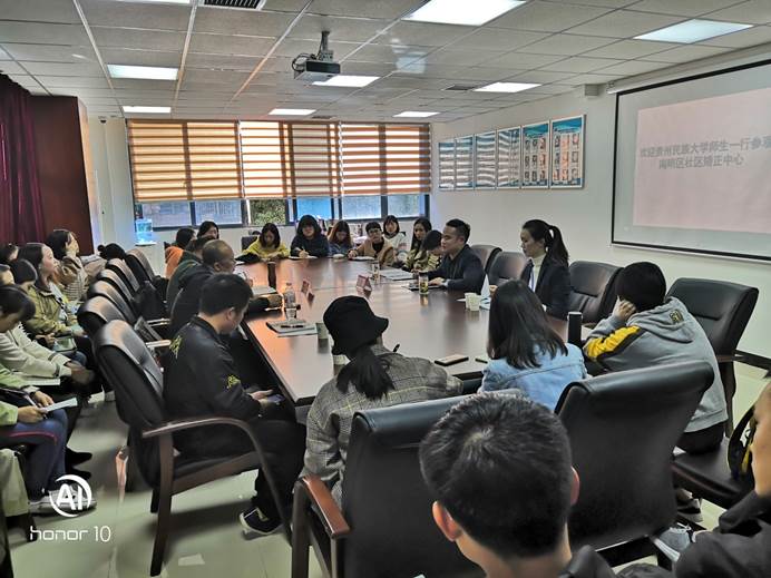 我校社工专业老师们在座谈会上介绍了我校以往与南明区社区矫正中心的实习合作情况,老师们认为,社会工作与社区矫正中心所开展的工作存在交叉点,这将促进我校社工专业与南明区社区矫正中心实习合作的进一步开展。
