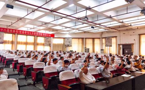 随着总监票人、监票人和选举工作人员进入工作岗位,选举开始。本次大会应到会正式党员为102人,其中5名正式党员因事、因病请假,实到会正式党员97名。