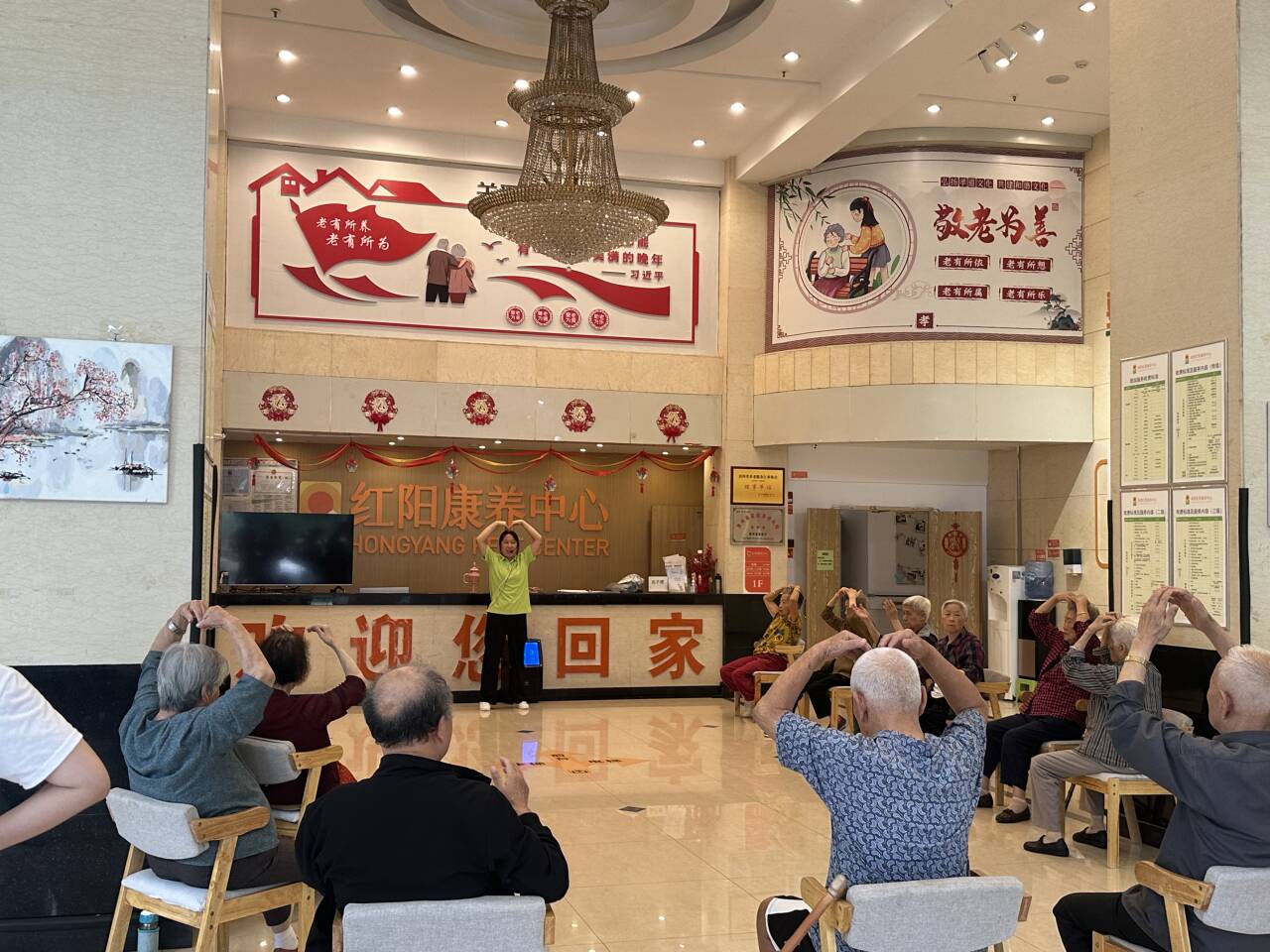 到访之际,正值康养中心康复师带领老人进行手势操活动,学院师生在一旁认真观摩经验丰富的康复师亲切地与老人们的互动,并借此机会与康养中心的工作人员进行深入交流,详细了解了该中心在老年人照护、康复理疗以及日常活动组织等方面的具体情况。