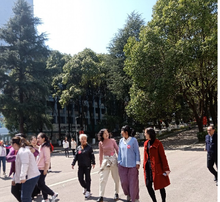 中午十二点半,BETWA西汉姆联女教师们到达办公大楼前集合并开始热身运动。活动开始,伴着春日暖阳,大家沉醉于明媚的春色,环绕着春意满满的校园迈步前行,一路欢声笑语,洋溢着和谐愉悦的氛围。此次徒步活动,增进了我院女职工之间的感情,也展现了我院女职工蓬勃向上,积极进取的精神面貌。