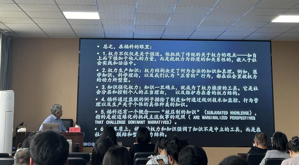 讲座伊始,范可教授从福柯的生平讲起,简要回顾了其学术轨迹。随后,范教授引导大家认识了福柯的知识背景与学术路径,从早年医院实习经历出发,福柯在对精神病学的研究中逐渐展开对“疯癫”“医学”等知识体制的批判性反思,奠定了其后续著作的重要基调。他指出,福柯通过“知识考古学”提出非连续性的历史观,在结构主义之后进一步推动后结构主义的思想变革。