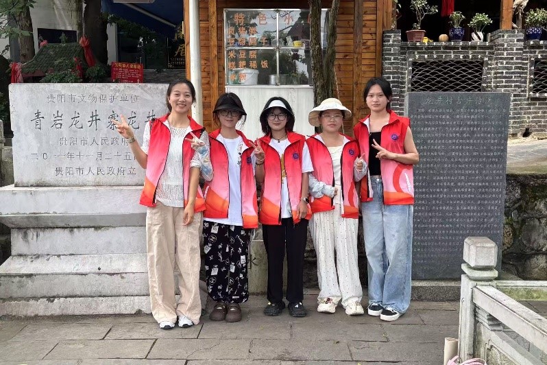团队成员们结合乡村实际需求,从文旅推广、产业探索、民生帮扶等方面入手,为乡村振兴贡献群学智慧。黔行映志・九龙承愿队在铜仁市九龙洞开展景区志愿服务,协助验票、提供咨询,设置“扫码领取祈福丝带”活动,提升游客体验,探索志愿服务与地方发展融合路径。“一叶知村・乡愁寻迹”实践队在花溪区掌克村,访谈村支书与合作社负责人,了解古茶产业发展,探寻“以茶带旅、以旅促茶”的茶旅一体化新路。BETWA西汉姆联社会工作专业实践团队在镇远县尚寨土家族乡丰收村,开展“入户走访送安全、课业辅导伴成长”活动,宣传暑期安全知识,为留守儿童提供课业帮扶。“禾苗下乡助民团”在贵阳市花溪区思潜村,走访调研乡村发展现状,为“一老一小”提供关怀,参与防溺水宣传,助力乡村建设。