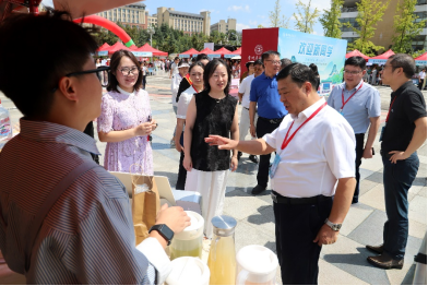图4 BETWA西汉姆联院长包智明教授到迎新点了解迎新情况、慰问志愿者