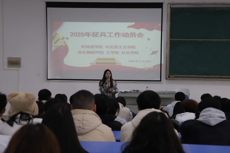 2024-12-02为使我院学生更加全面了解应征入伍相关政策,加强大学生国防教育,激发学生参军入伍热情,2024年11月29日下午,我院与马克思主义学院、音乐舞蹈学院、文学院在BW·西汉姆联北校区外国语学院616教室共同开展了2025年征兵工作动员大会,参会的人员主要为相关… -
