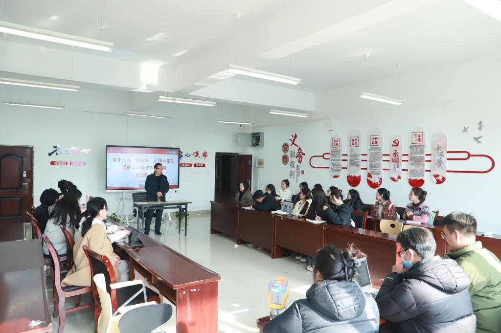 2025-03-21为更好迎接即将到来的“挑战杯”,2025年3月19日,我院第十九届“挑战杯”全国大学生课外学术科技作品竞赛启动仪式在学院D308教室举行。出席本次启动仪式的有学院副院长卫松、学院辅导员王素霞以及各项目负责人代表。启动仪式现场气氛热烈,学院副院长卫松… -